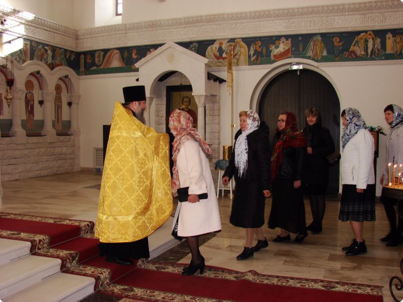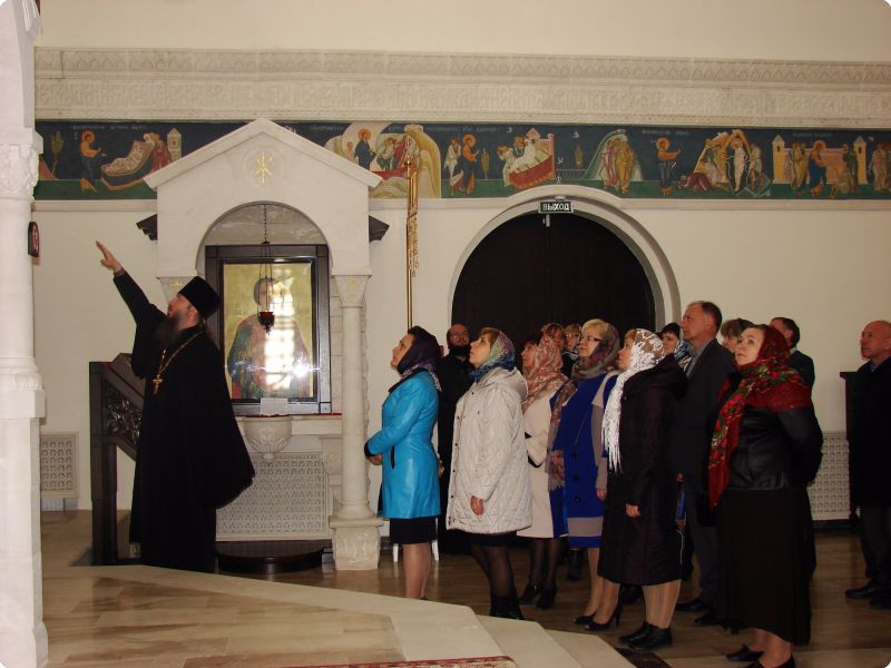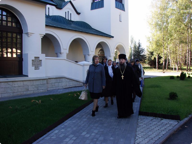 После молебна отец Алексий провёл для гостей экскурсию по храмовому комплексу, который объединяет два храма: в честь великомученика и целителя Пантелеимона и в честь святого праведного Иоанна Кронштадтского.