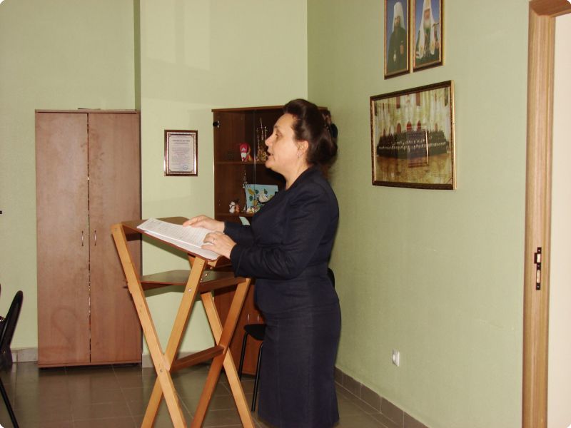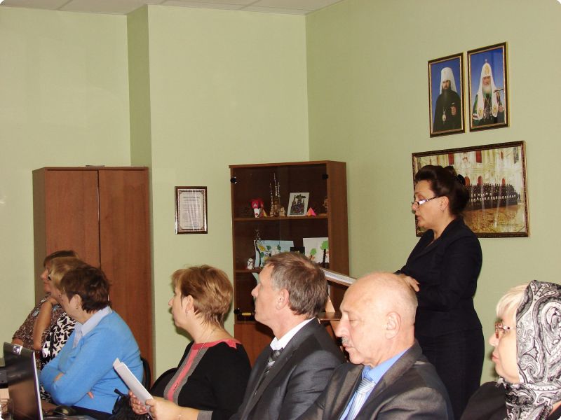 Затем с докладом о работе районного ресурсного центра духовно-нравственного воспитания и гражданского образования выступила директор МБОУ средней общеобразовательной школы №48 А.В.Савенкова. В своём выступлении Анна Валентиновна неоднократно говорила о тесном и плодотворном сотрудничестве с Приокским благочинием и выражала искреннюю благодарность за помощь в проведении совместных мероприятий и обучении педагогов района, за большую помощь в формировании методического кабинета центра.