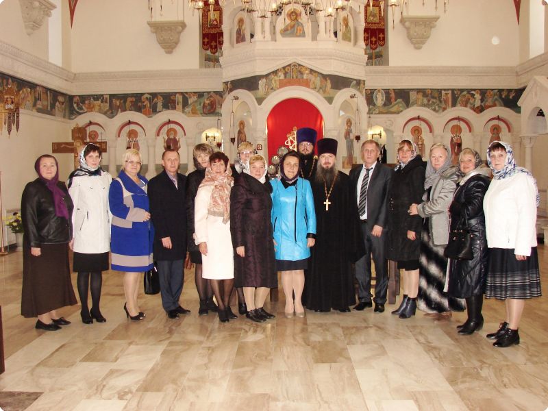 Встреча продолжилась за круглым столом. Благочинный иерей Алексий поздравил всех присутствующих с профессиональным праздником – Днём учителя. От всей души выразил благодарность за их самоотверженный труд, пожелал помощи Божией в их благородном служении.