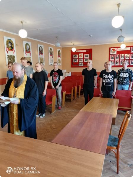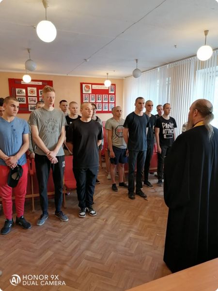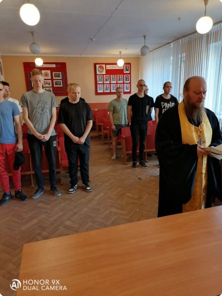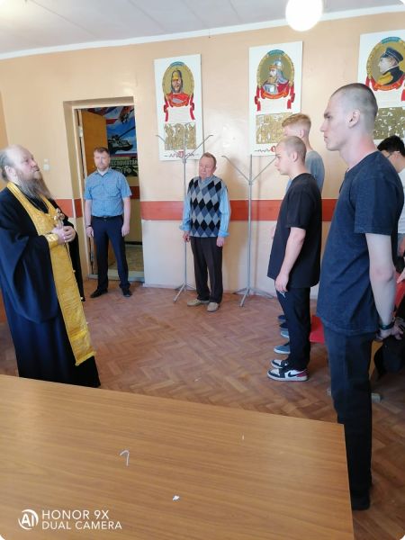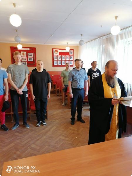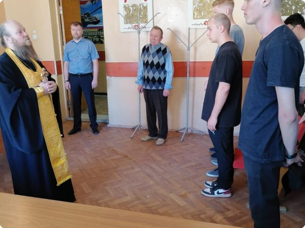 По окончании беседы был совершён молебен перед отправкой призывников на воинскую службу, в ходе которого будущие воины получили иконы святого благоверного князя Александра Невского и святого преподобного воина Феодора Ушакова на благословение.