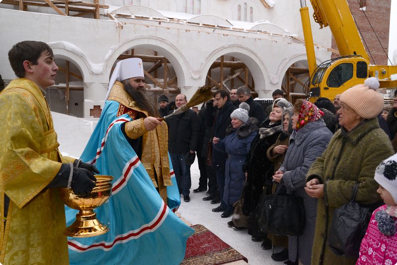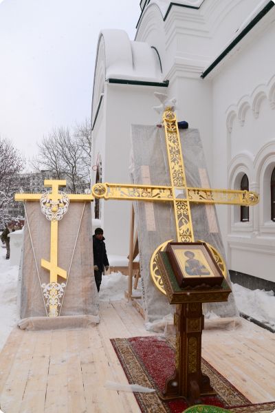 Перед началом чина освящения правящий архиерей поздравил собравшихся со знаменательным событием: «Сегодня радостный и благодатный день - мы освящаем кресты для нашего благолепного храма, который является врачебницей духовной и телесной. Пусть мир и Божие благоволение пребывают со всеми нами».