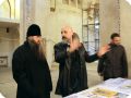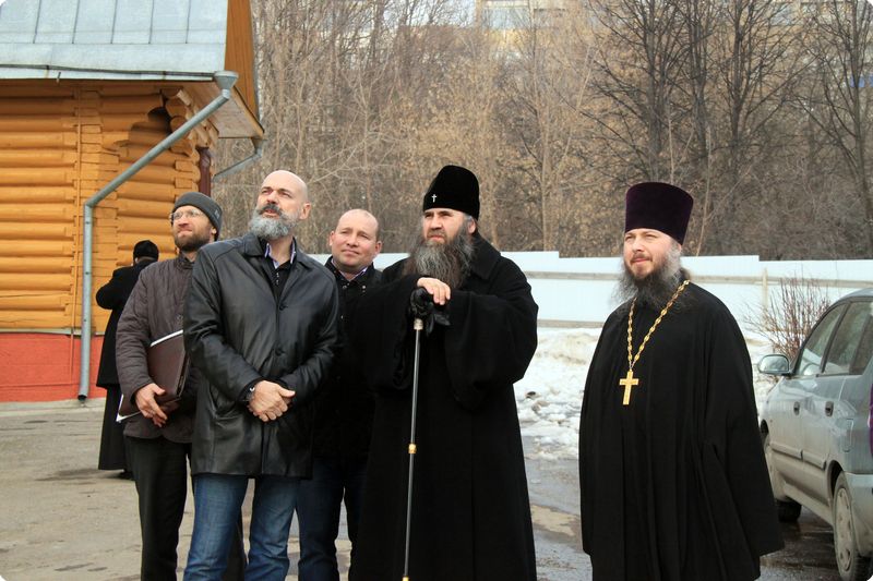 Его Высокопреосвященство сопровождали благочинный Приокского округа Нижегородской епархии и настоятель Пантелеимоновского храма иерей Алексий Корехов, помощник управляющего епархией по административно-хозяйственным вопросам протоиерей Артемий Паршин, архитектор проекта храма Андрей Анисимов, руководитель иконописной мастерской «Ковчег» Алексей Анциферов и другие участники создания церкви.
