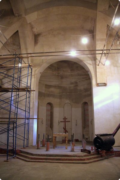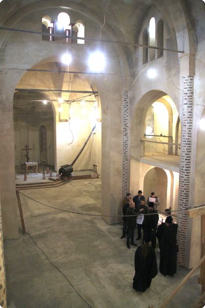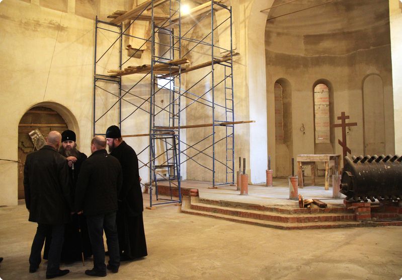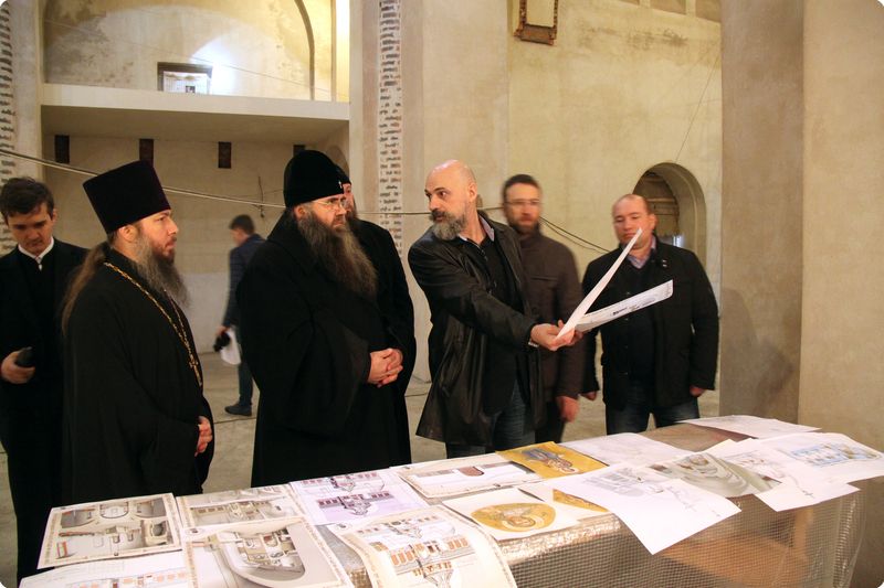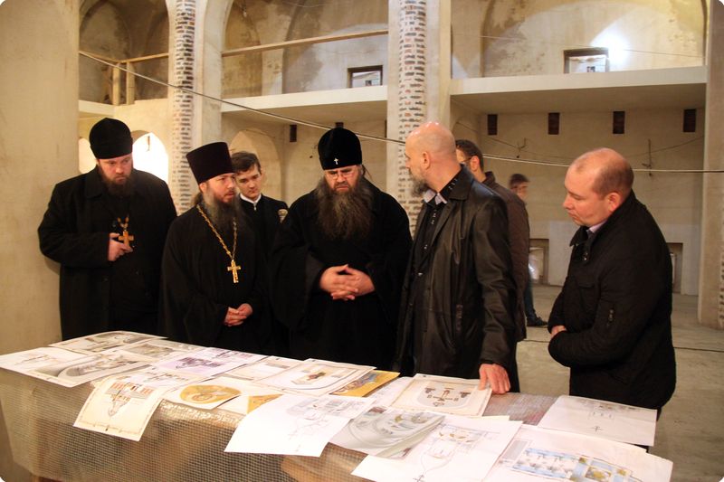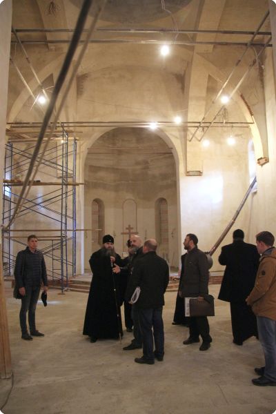 Осмотрев храм, правящий архиерей провел совещание, посвященное продолжению его строительства. В настоящее время здание готово на 70-80%. Уже выполнены внутренние отделочные работы. Среди предстоящих этапов строительства – роспись храма, создание интерьера, изготовление полов. Освящение планируется 8 августа – накануне дня памяти великомученика и целителя Пантелеимона.
