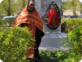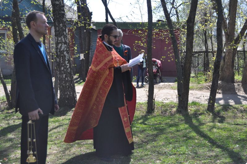 В 12:30 у памятника погибшим воинам Великой Отечественной войны в деревне Ляхова Приокского района настоятель Прихода храма в честь святого великомученика Георгия Победоносца иерей Дионисий Духновский совершил поминальную панихиду.