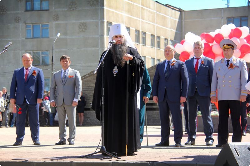 Присутствующие почтили минутой молчания память тех, кто отдал жизнь, защищая Родину, возложили цветы к Вечному огню и памятнику Георгию Жукову, запустили в небо воздушные шары и копию знамени Победы.