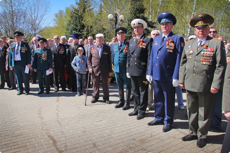 В честь Дня Победы по площади торжественным маршем прошли офицеры смешанного летного полка, военнослужащие военно-морской части, слушатели Нижегородской академии МВД России, участники детских и юношеских военно-патриотических объединений района.