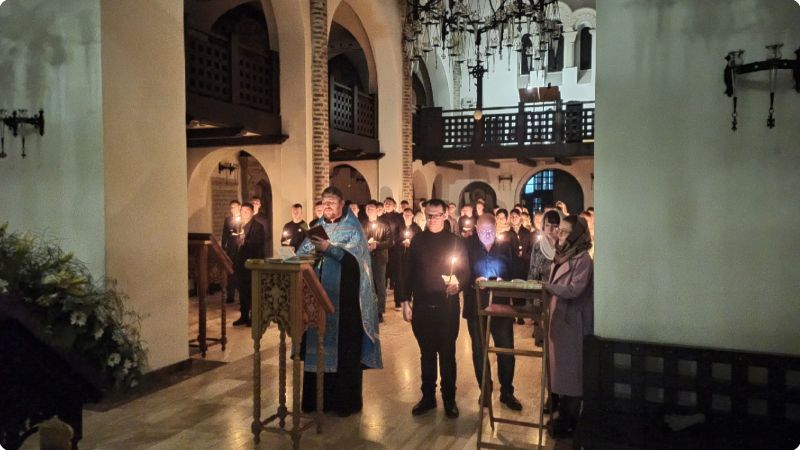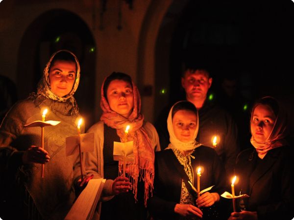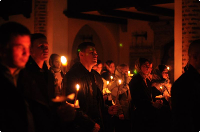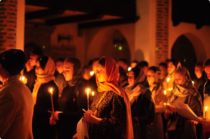 С 22:00 волонтёры вместе с куратором по образовательной деятельности Строгановым Дмитрием собрались в доме причта храма в честь святого великомученика и целителя Пантелеимона и стали готовиться к богослужению. Нарезали бумагу для записок и свечей, готовили трапезу, позже разожгли лампады в храме и стали встречать всех желающих посетить ночное бдение.