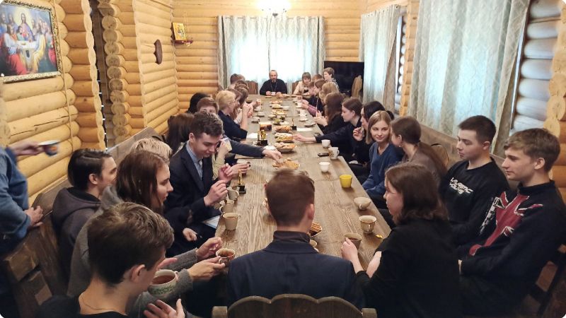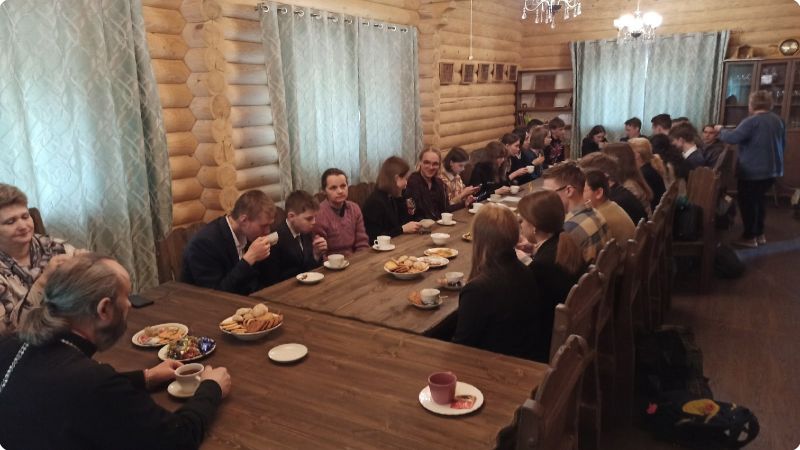 После всё приступили к чаепитию, а о. Владимир рассказал школьникам о необходимости изучения уникальной русской православной культуры, которая является духовным и идейным столпом нашего Отечества.