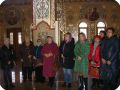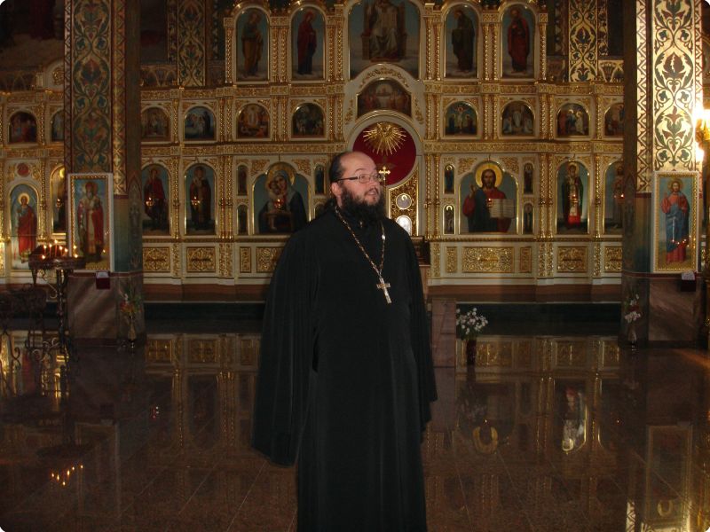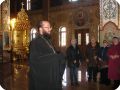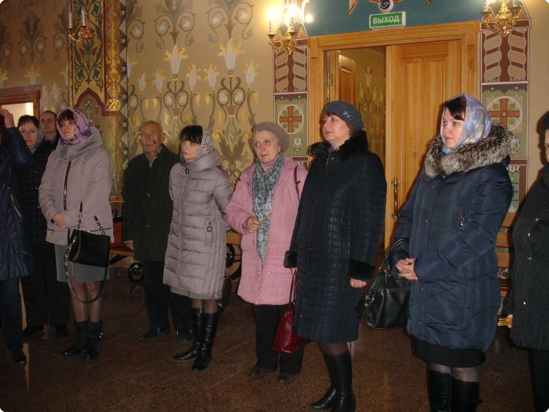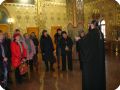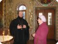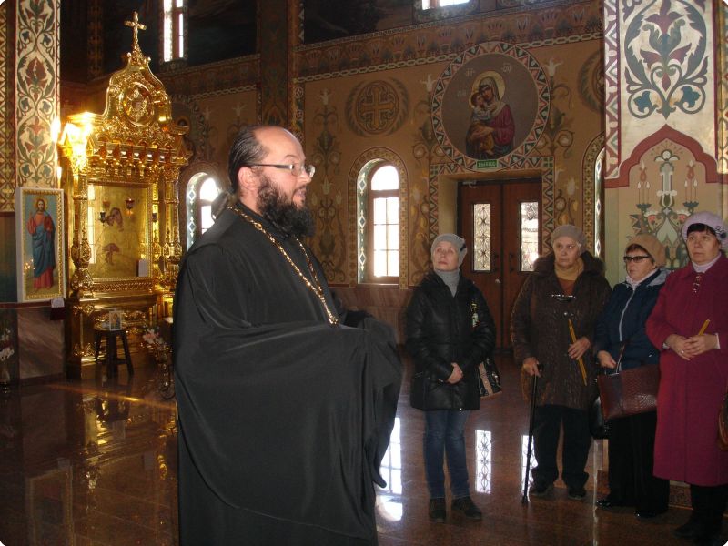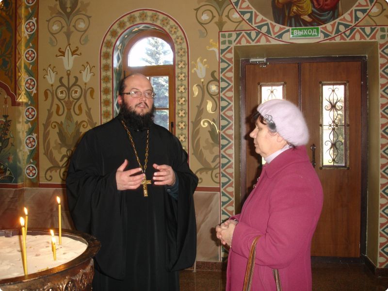 Отец Сергий рассказал учителям об устройстве храма, его строительстве, особенностях архитектуры и о тех святынях, которые находятся в храме. Новый храм - первый в Нижнем Новгороде, освящённый в честь образа Матери Божией "Взыскание погибших" – действительно поражает внутренней росписью, изобилует количеством орнаментов на золотом фоне, за счёт чего храм приобрёл свой уникальный облик. После окончания экскурсии, отец Сергий ответил на вопросы учителей.