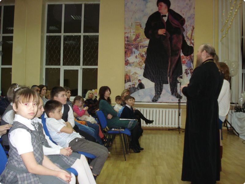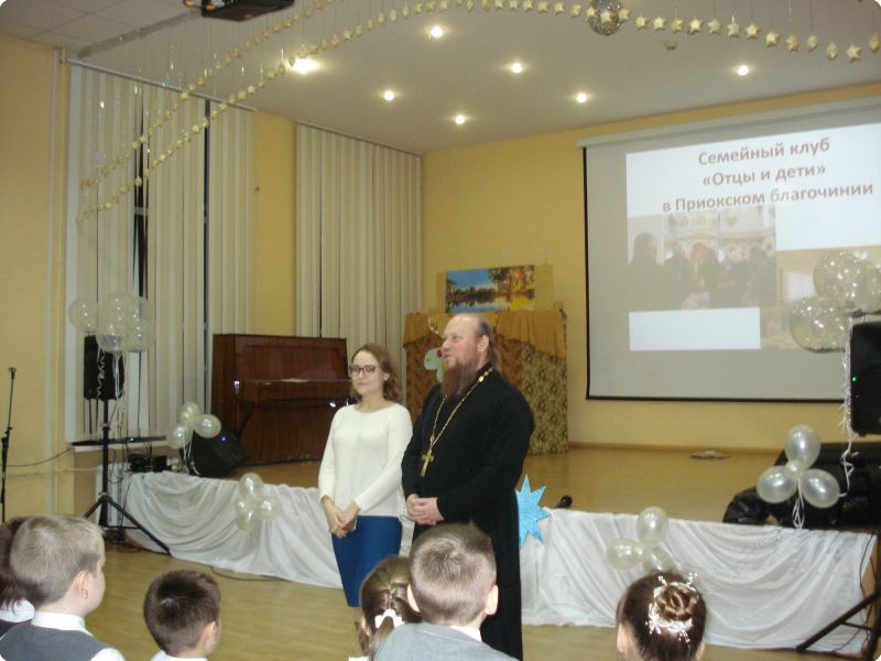 Также на сцену с приветственным словом был приглашён глава клуба православной семьи, православной общины, настоятель храма в честь святого великомученики Георгия Победоносца, протоиерей Виктор Поляков.