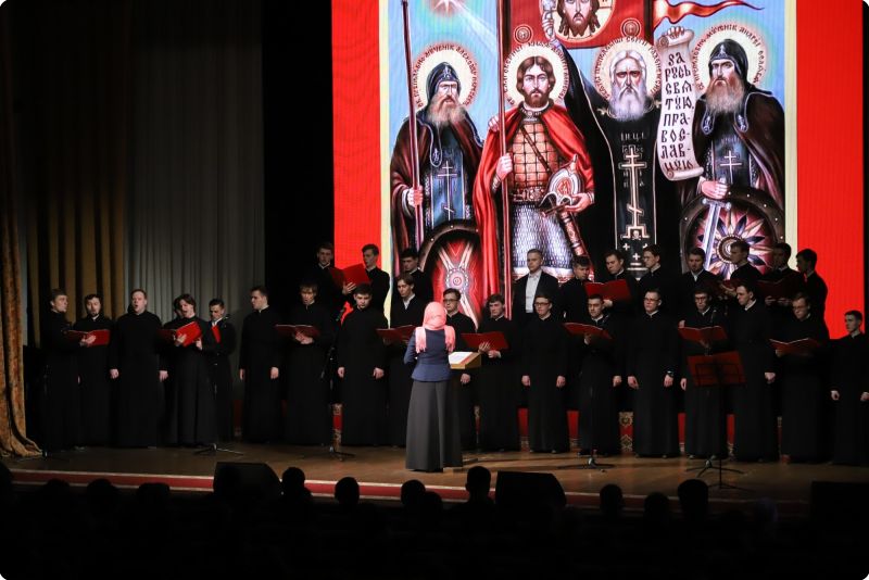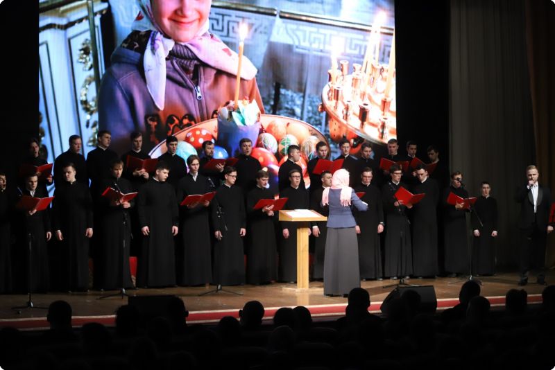 С приветственным словом выступил настоятель храма в честь святого великомученика Георгия Победоносца протоиерей Виктор Поляков, который поздравил руководство и курсантов с праздником Святой Пасхи и днем Славянской письменности и культуры. В концертной программе прозвучали Пасхальные песнопения и песни военных лет.