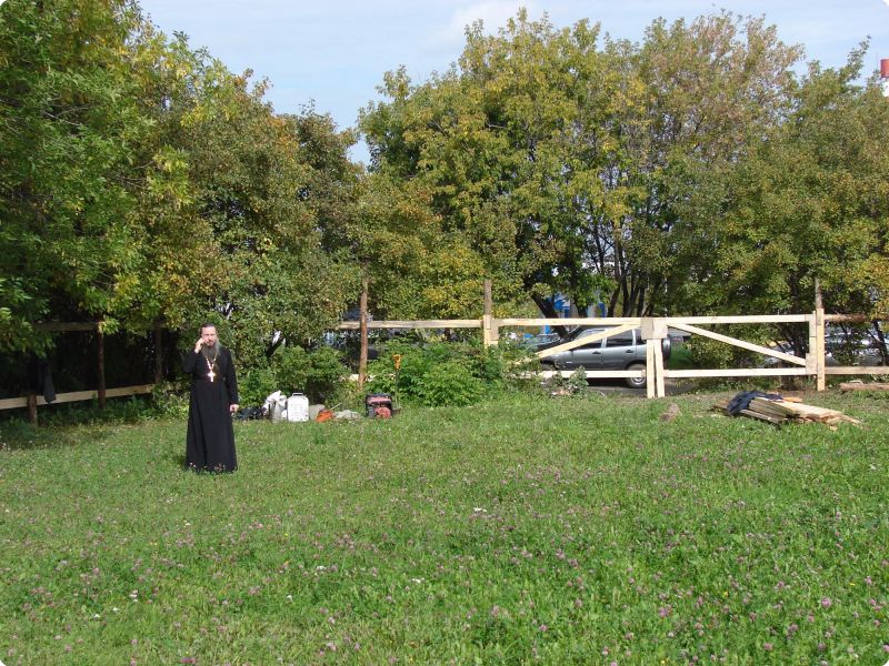 В память о сегодняшнем дне у храма были посажены липы. В церемонии посадки деревьев приняли участие митрополит Георгий, семья Захаровых и другие попечители храма.
