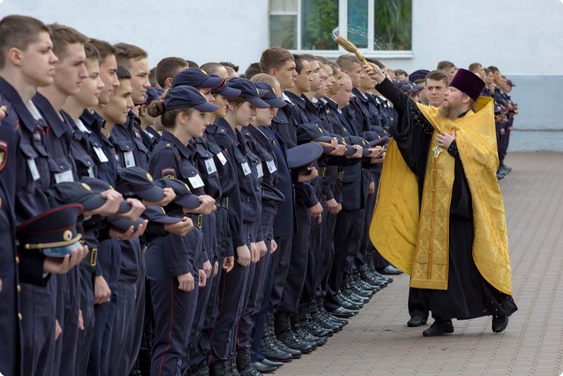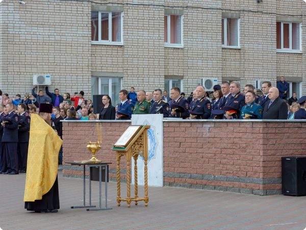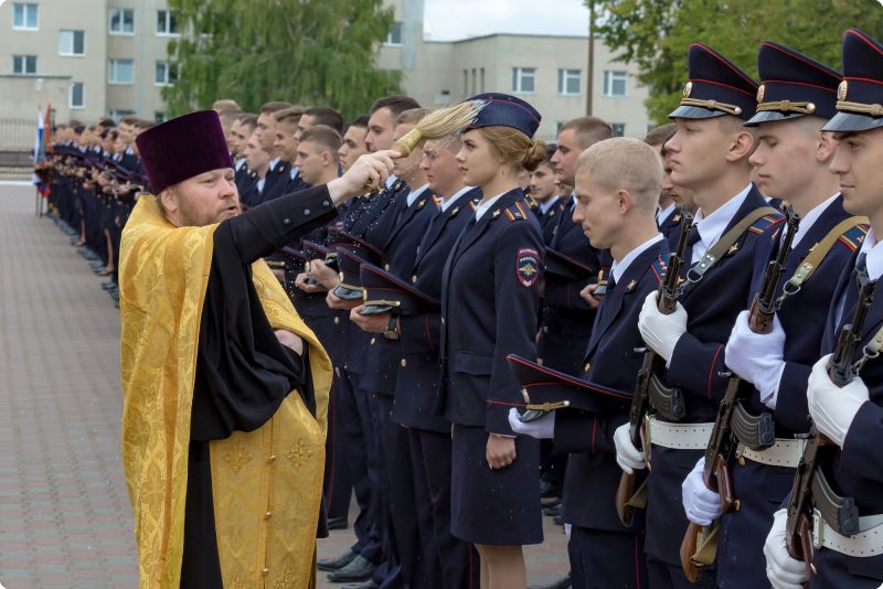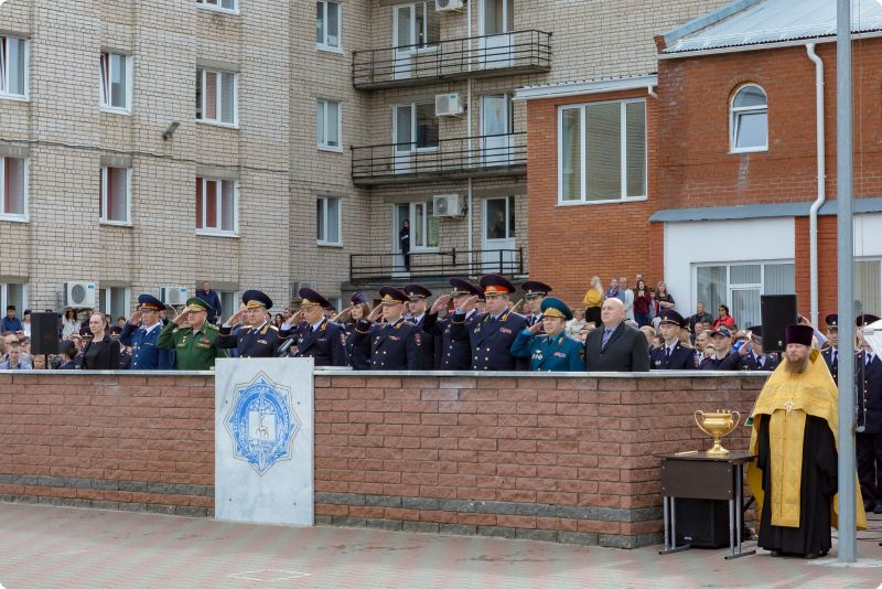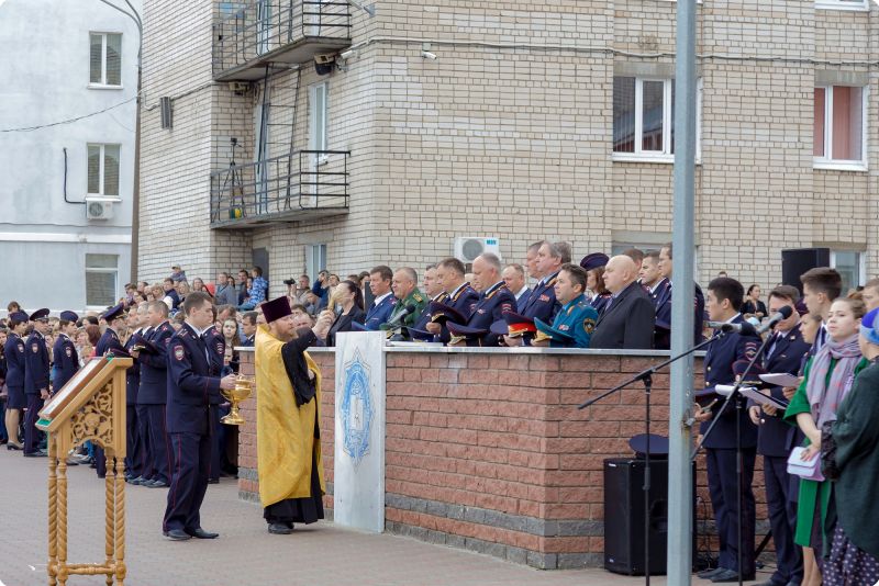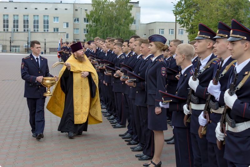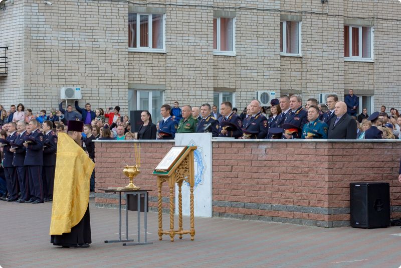 Официальная часть мероприятия началась с выноса Государственного флага Российской Федерации и знамени Нижегородской академии МВД России, после чего помощник руководителя отдела Нижегородской Епархии по взаимодействию с вооруженными силами и правоохранительными органами протоиерей Виктор Поляков совершил благодарственный молебен.